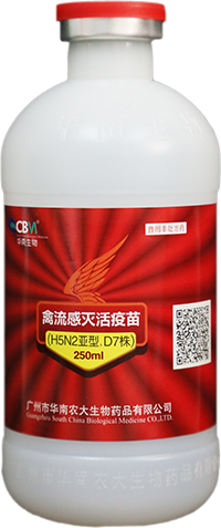 [Composition]The product contains inactivated avian influenza virus A / Duck / Guangdong/D7/2007(H5N2)(Strain D7), after inactivation, the potency of chick embryo hemagglutination (HA)is ≥1:256