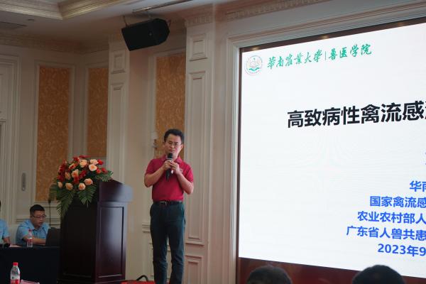 華南生物研究院副院長葉賀佳做“高致病性禽流感疫苗新技術簡介及禽流感疫苗的創制”的主題報告。葉院長介紹了當前禽流感疫苗新的研發技術以及華南生物禽流感疫苗毒株的構建工藝,也為禽流感的研發指明了方向。
