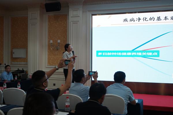 華南生物技術行銷總監助理郝建勇做“禽元產品優勢介紹及TCO分析”主題報告,郝總介紹了華南生物禽元的特點和優勢以及與其他廠家疫苗的不同之處,最后對禽元產品在臨床應用方面的數據進行了分享,給客戶堅定了使用信心。