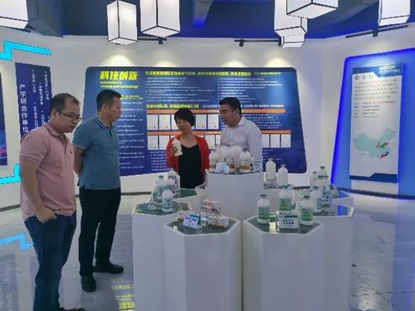 春茂集團羅總、鳳翔集團梁科長、瑞金祥瑞賈總和楊總在華南生物營銷中心總經理徐兆強的陪同下參觀了華南生物展廳,徐總對華南生物的發展歷程和企業文化進行了詳細的講解,對華南生物未來的發展規劃及研發方向與羅總一行進行詳細介紹。